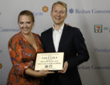Konica Minolta demonstrerar den digitala etikettmaskinen Accurio Label 230 i två exemplar, där en hottas upp med en flexostation inline för att trycka vit bakgrund.